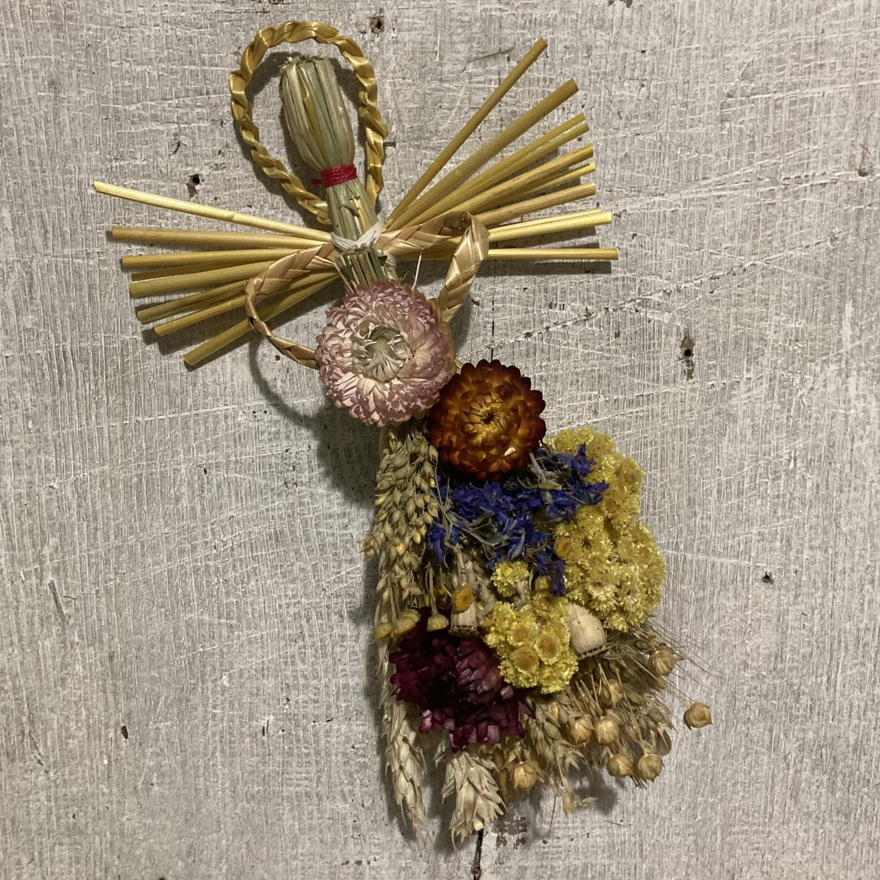 Матеріал: натуральна житня солома, льон, сухоцвіти